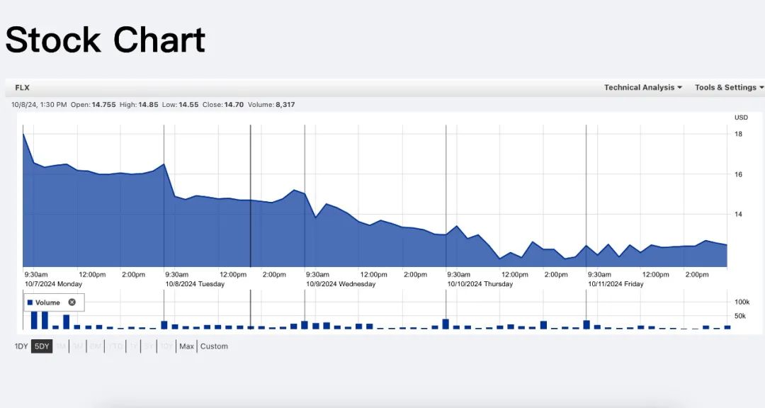 10月4日,閃送終於在納斯達克敲鐘上市,股票代碼FLX,發行價16.5美元,市值約11.7億美元。