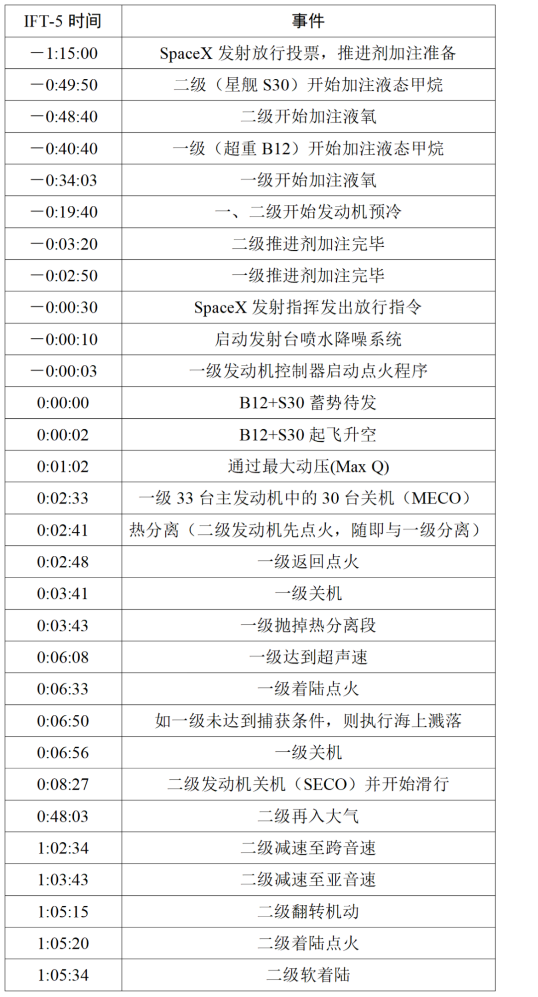 表1 超重-星艦第5次試飛飛行時序