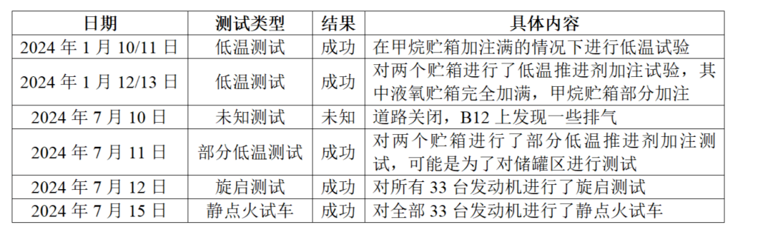 表2 星艦S30地面試驗歷程