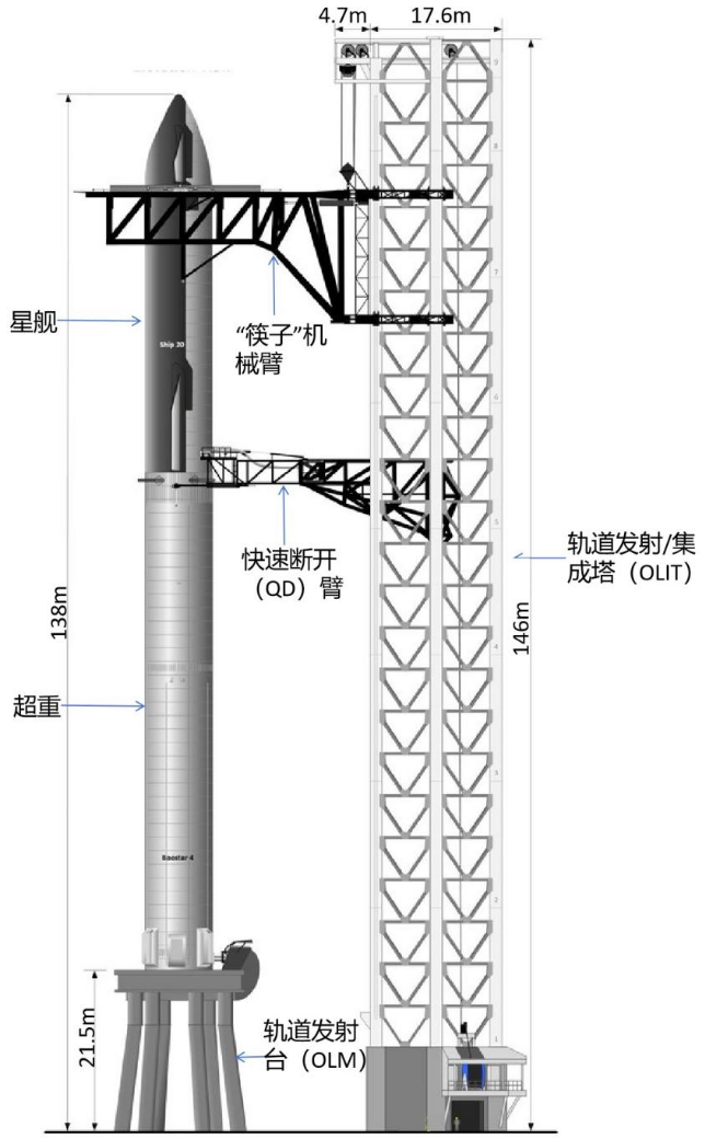 圖11 軌道發射/集成塔示意圖(來源:X@LunarCaveman)