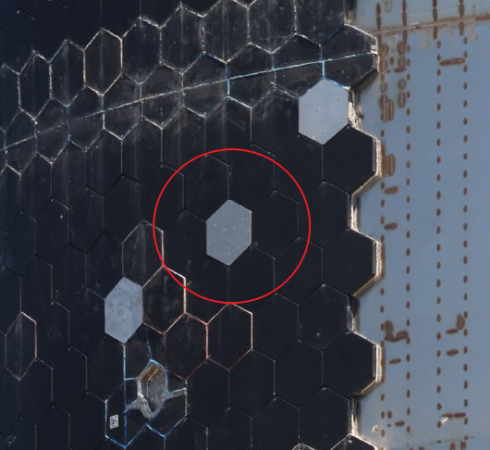 起飛後約58分42秒,直播人員表示,星艦S30上佈置了新的銀色防熱瓦,是在標準防熱瓦外表包裹了鋁材料,因為鋁融化的温度是不鏽鋼開始失效的温度,以此來指示結構的受熱問題;
