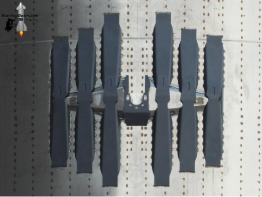 穩定點縱梁:兩個穩定點均添加了6個新縱梁,兩側各有3個,並被塗上了黑漆,有猜測,這種設計是為了在首次回收測試中檢驗一級與機械臂或塔架的碰撞情況。