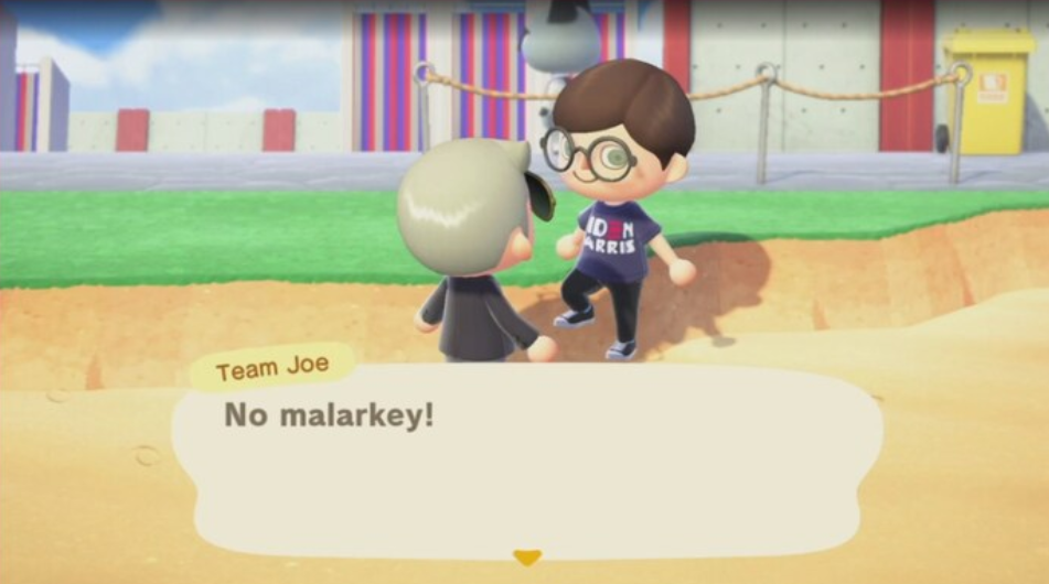 但不同於毫無關聯的直播,拜登的團隊細緻地搭建了一整座“競選島”,島上不僅有參照現實外觀設計的辦公樓、商店和投票站,慕名而來的玩家可以從中瞭解到拜登本人的相關理念,甚至還能在其中偶遇高喊競選口號“No Malarkey”的團隊成員。