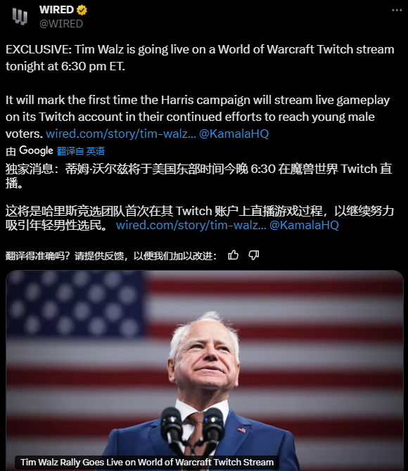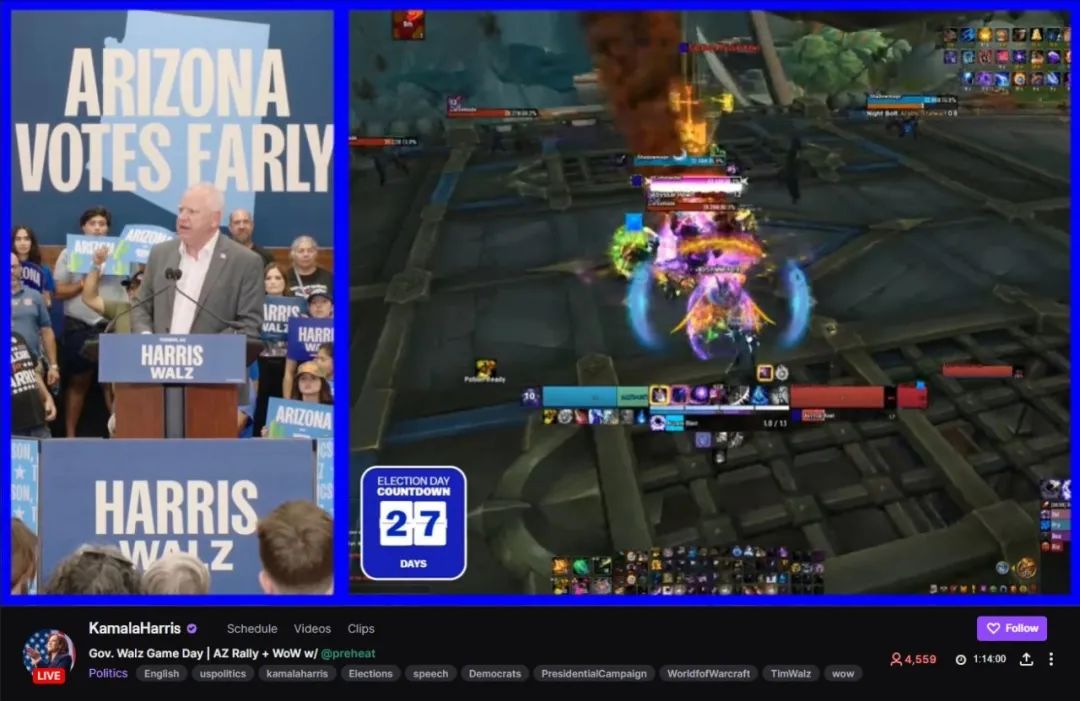 作為一名政治人物,哈里斯和團隊雖然並未對《魔獸世界》發表過任何觀點,但在風格一致的政治演講視頻中加入遊戲畫面,無論如何都會吸引大量好奇或者看熱鬧的好事者。這場直播的播放量就是最好的證明:
