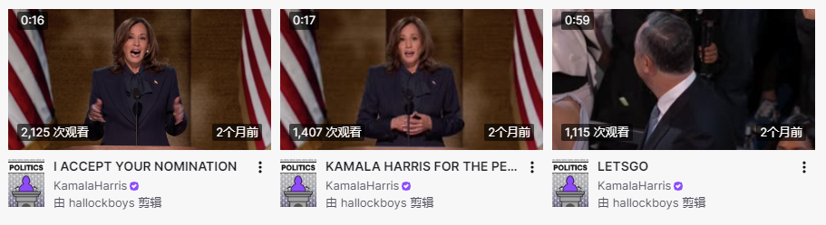 早在今年8月份,團隊就在Twitch上開通了帳號,並且直播了幾場哈里斯本人的政治活動演講,當時哈里斯團隊的發言人曾針對入駐Twitch這件事解釋道:“目的是將她未來的願景直接傳達給最難接觸到的選民和那些將決定這次選舉的人。”指的自然是數量龐大的年輕選民。