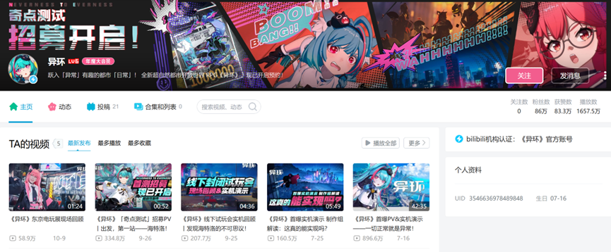自7月份公開以來,完美世界旗下工作室Hotta Studio開發的《異環》在玩家間就備受關注。不僅是首爆PV在B站就獲得了近900萬的播放,之後發佈的幾則視頻也都有着穩定的播放。就連製作人都説反響超出預期。