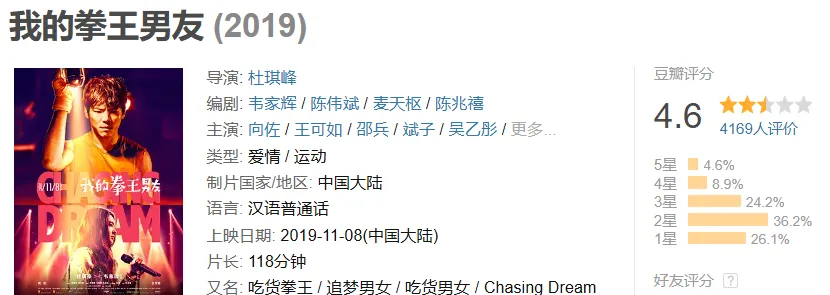 杜琪峯拍出生涯最低的《我的拳王男友》,一部為向佐量身定製的電影,豆瓣4.6。