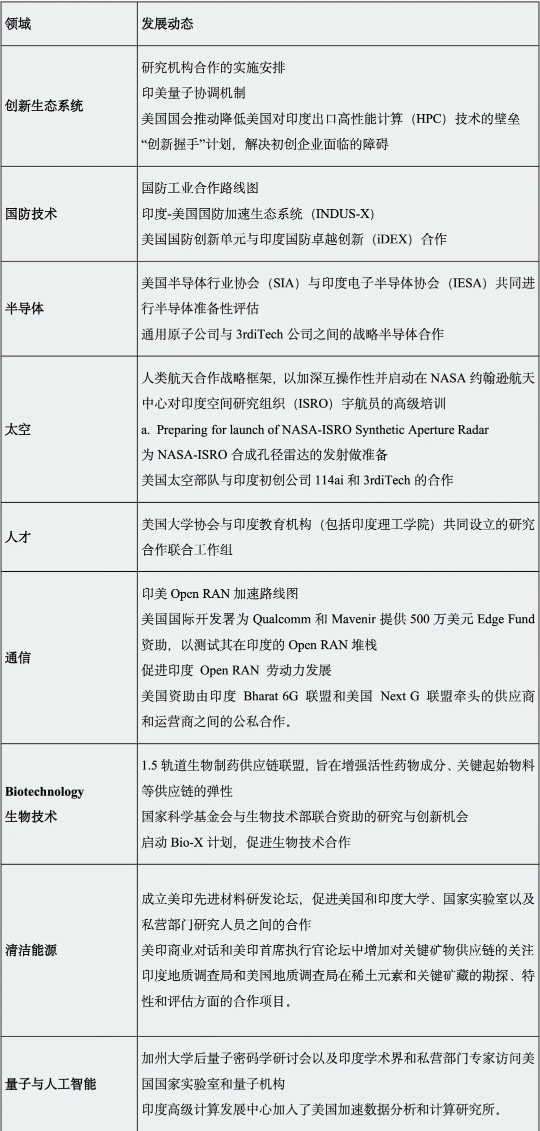 表2:2023年和2024年美印iCET(關鍵和新興技術倡議)的重要進展。來源:觀察家研究基金會研究