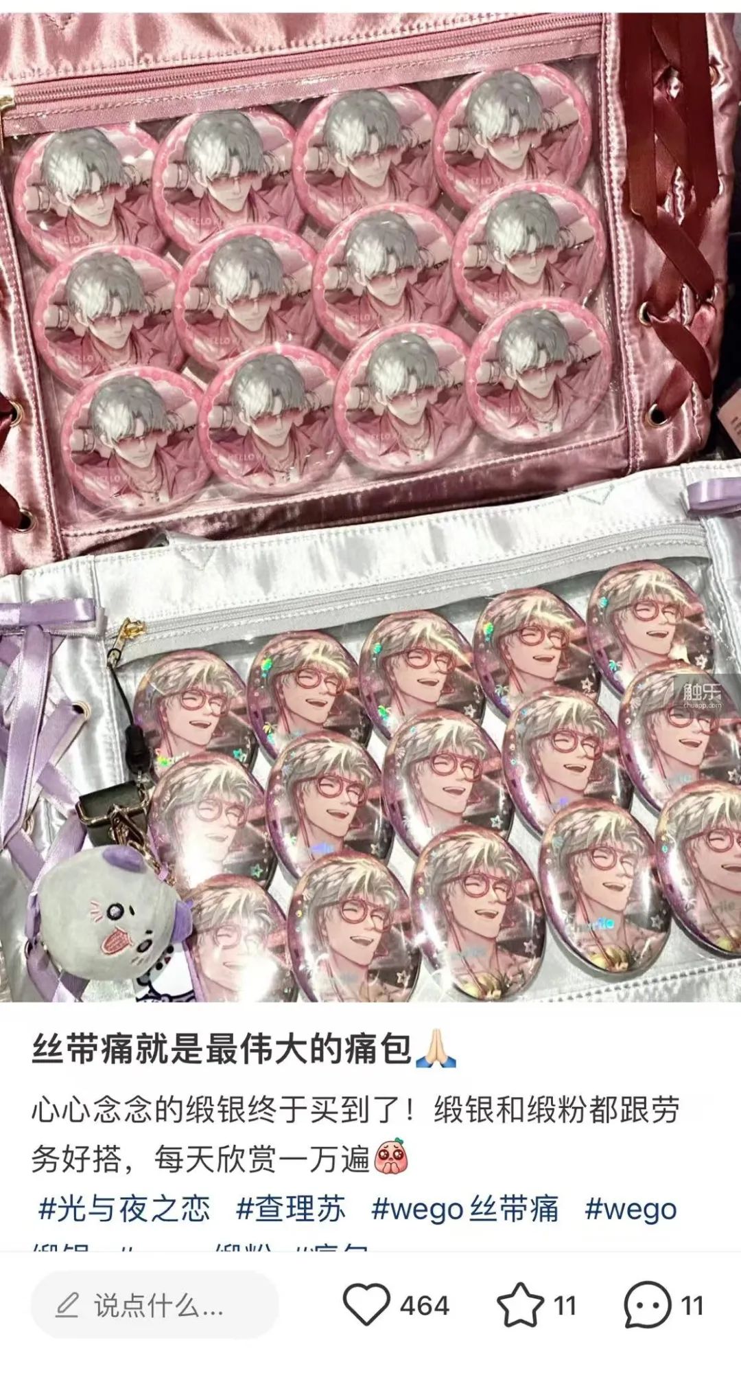 扎滿《光與夜之戀》男主角“查理蘇”吧唧的痛包