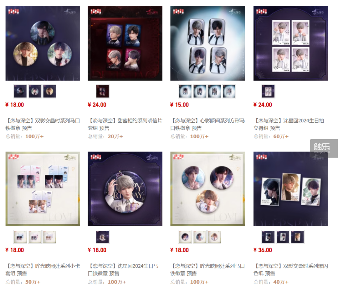任何情況下,這都是一個有點誇張的數字。不過,對國乙周邊來説,這尚屬正常範圍。《戀與深空》上一期周邊推出時,總銷售額在3小時內也超過了9000萬元。今年8月,《光與夜之戀》第三次復刻被玩家稱為“婚谷”的徽章,儘管有前兩次超過百萬的銷量打底,依然再度賣出了100多萬枚。