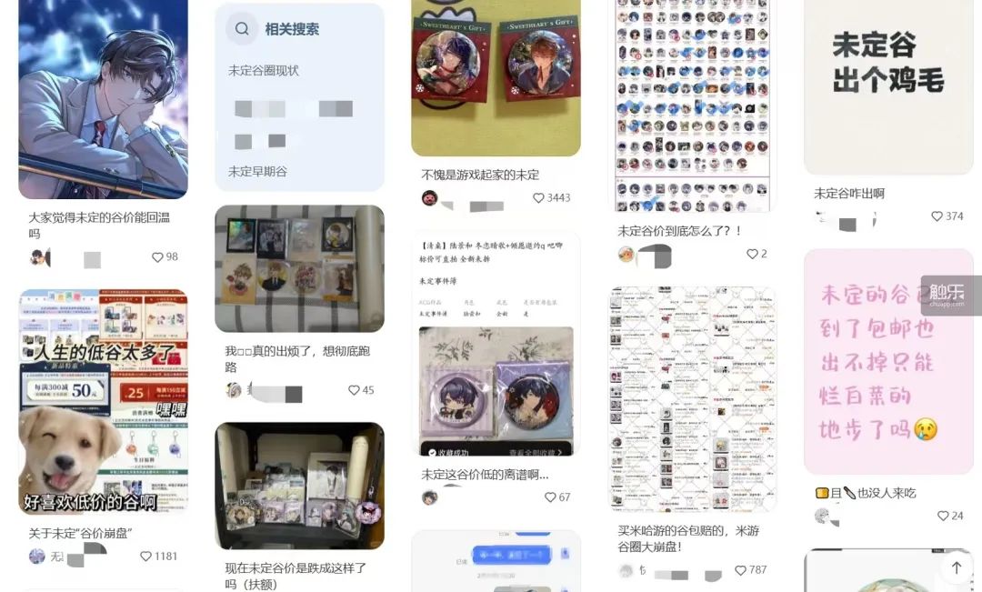 這樣的想法也有現實佐證。2023年,某個以“買谷”為主題的社媒賬號發佈了一則投稿,投稿人表示,自己曾在《光與夜之戀》開服早期大量購買遊戲的預售“官谷”(指官方推出的周邊),又在大半年後賣出,此時這批穀子早已無法購買,原價12元一枚的徽章,一度“炒”至上百元,她也因此“賺到了人生中的第一桶金”。
