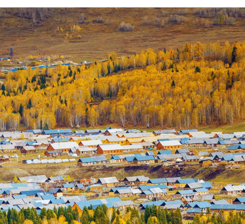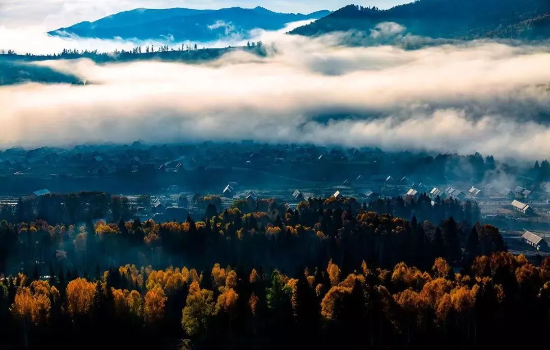 秋天秋意爬上枝頭,五彩的山花和依舊蒼翠的森林交織,散佈的村莊星星點點,牛羊散漫地擺動尾巴,當地獨特的民族風情更是為這最美小鎮添加其它地方無法比擬的美。神秘的湖怪、古樸的圖瓦人、變換的湖水……讓這裏的訪客們如痴如醉,忘卻歸路。