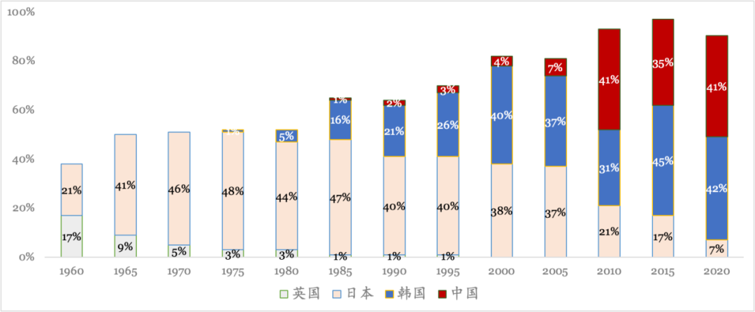 2000年,韓國以40%的市場份額正式超過日本,問鼎全球第一。