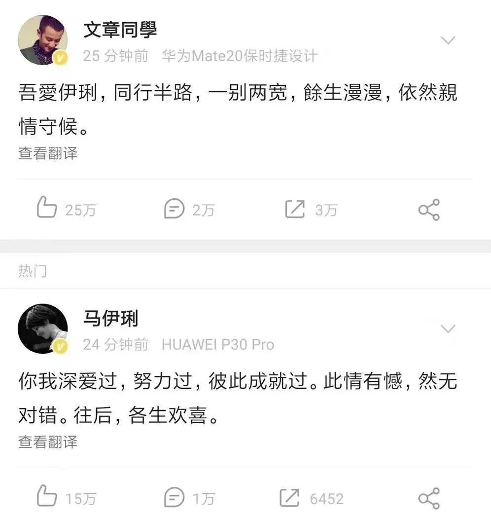 文章與馬伊琍官宣離婚