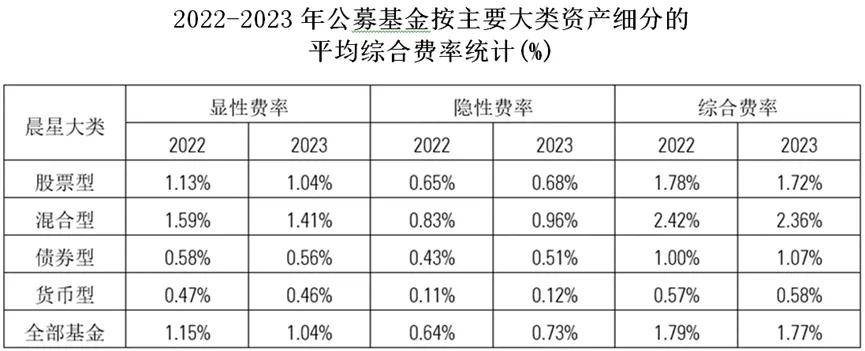 反觀國內市場,自2023年7月以來,監管陸續出台了多項調降公募基金費率的政策,2023年股票型基金和混合型基金的平均顯性費率(包括管理費、託管費和銷售服務費)已經出現了顯著的下調,分別降至1.04%和1.41%,較2022年底分別下降了8%和11%。