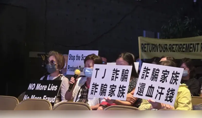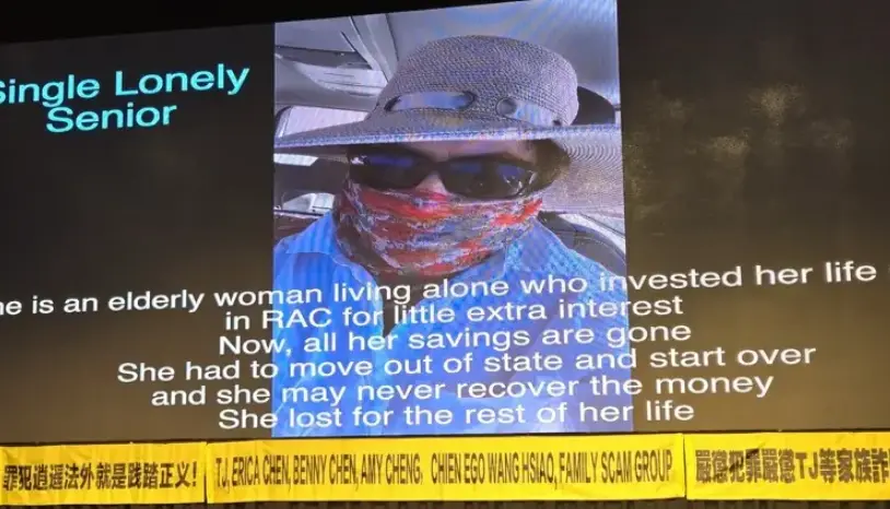 349名受害者中的數百名華人自發組成自救會,日前在工業市舉行聲討會為自己發聲。受害人拉起橫幅、舉着標語,高喊RAC執行長Tin-Jon Syiau(TJ)及其家族騙走他們的退休金、血汗錢。