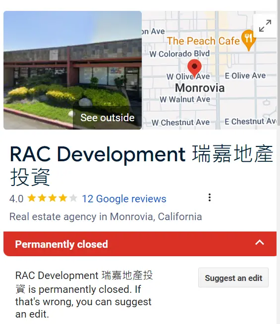 華人生活網2024年10月15日 04:54:360人蔘與0評論南加州瑞嘉地產投資公司(RAC Development Inc .RAC)被曝涉嫌龐氏騙局、吸金數額高達1億美元。