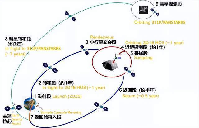 那麼我們就可以通過一次發射實現取樣返回和彗星繞飛雙重探測來實現,也就是首先對小行星進行繞飛,然後着陸採集樣品,最終返回地球。