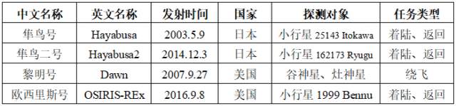 部分國家小行星任務情況