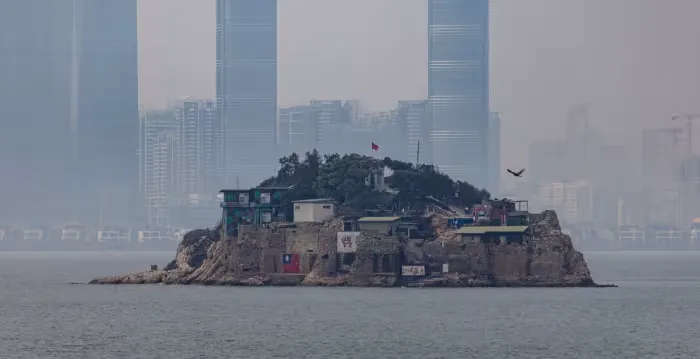距離大陸最近的金門獅嶼島,背景就是廈門市的城市羣