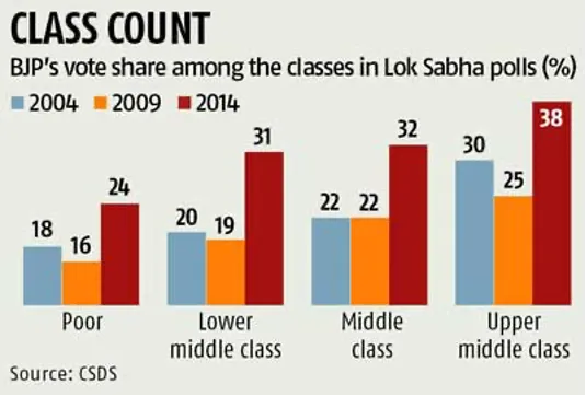 印人黨近年選票的階級組成。圖源:business-standard.com