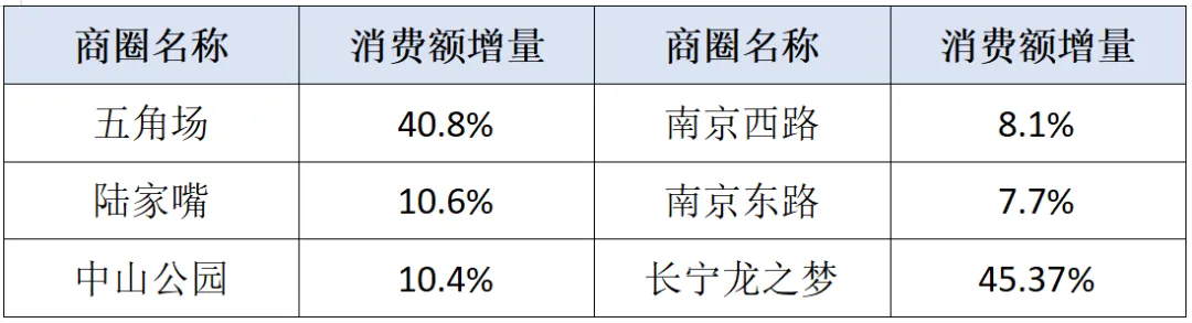 我們隨便抽幾個商圈看看今年十一期間消費額的增量