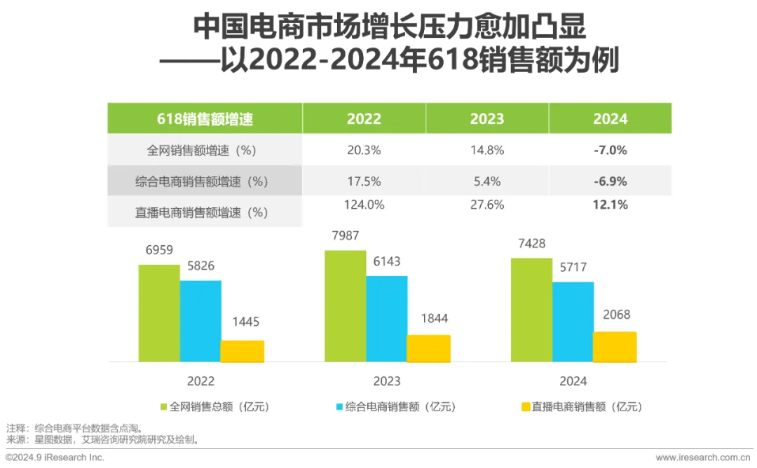 以最近三年的618銷售額為例,下滑的趨勢很明顯,到2024年已經是負增長了