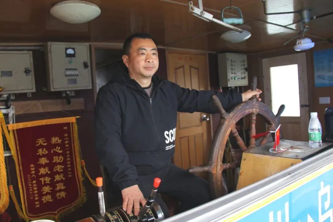 每天早上六點半,他會站在駕駛室裏,把着那被歲月盤出包漿的舵,迎着朝陽出發,風雨無阻。