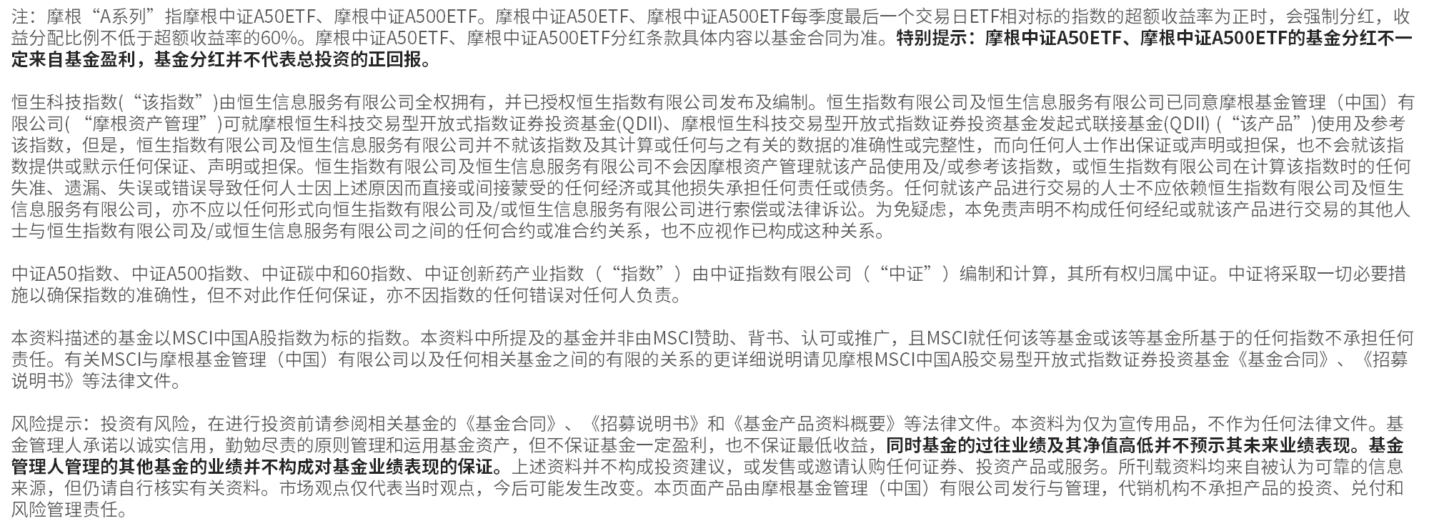 此外,摩根旗下相關ETF還有可以佈局港股優質紅利資產的摩根標普港股通低波紅利ETF(513630)、佈局港股科技龍頭的摩根恒生科技ETF(QDII)(513890)、佈局A股創新藥龍頭的摩根中證創新藥產業ETF(560900)、捕捉綠色中國投資機遇的摩根中證碳中和60ETF(560960),以及佈局中國核心資產的摩根MSCI中國A股ETF(515770)。