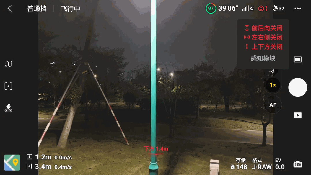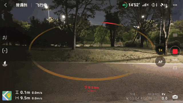 可以看到在白天光線充足的情況下,上一代 Air 3 雖然依靠視覺避障也能實現全向避障,但是一旦到了晚上,它的避障系統就直接擺爛,這時候完全得靠人來判斷。