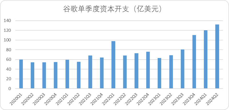 圖:谷歌單季度資本開支趨勢,來源:企業財報,錦緞整理