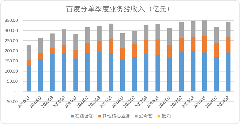 圖:百度單季度分業務線收入,來源:企業財報,錦緞研究院整理