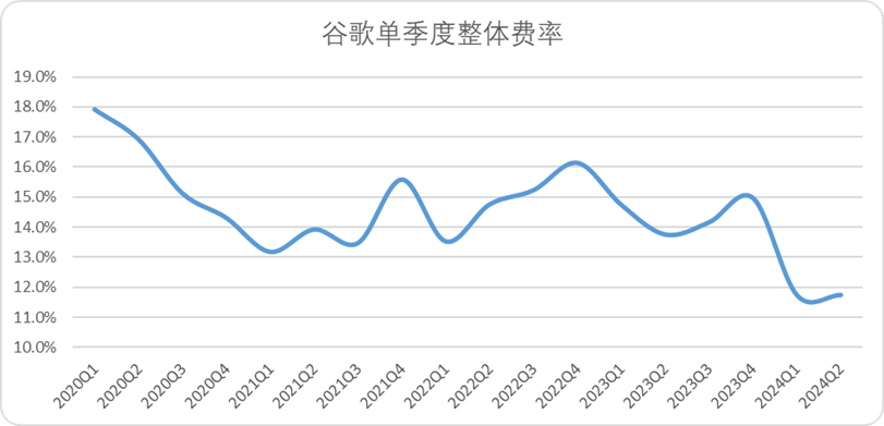 圖:谷歌單季度費率趨勢,來源:企業財報,錦緞研究院整理