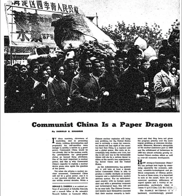 當時,美國的輿論機器也一起開動,像《紐約時報》拿着紙老虎的梗,説我們才是紙龍。
