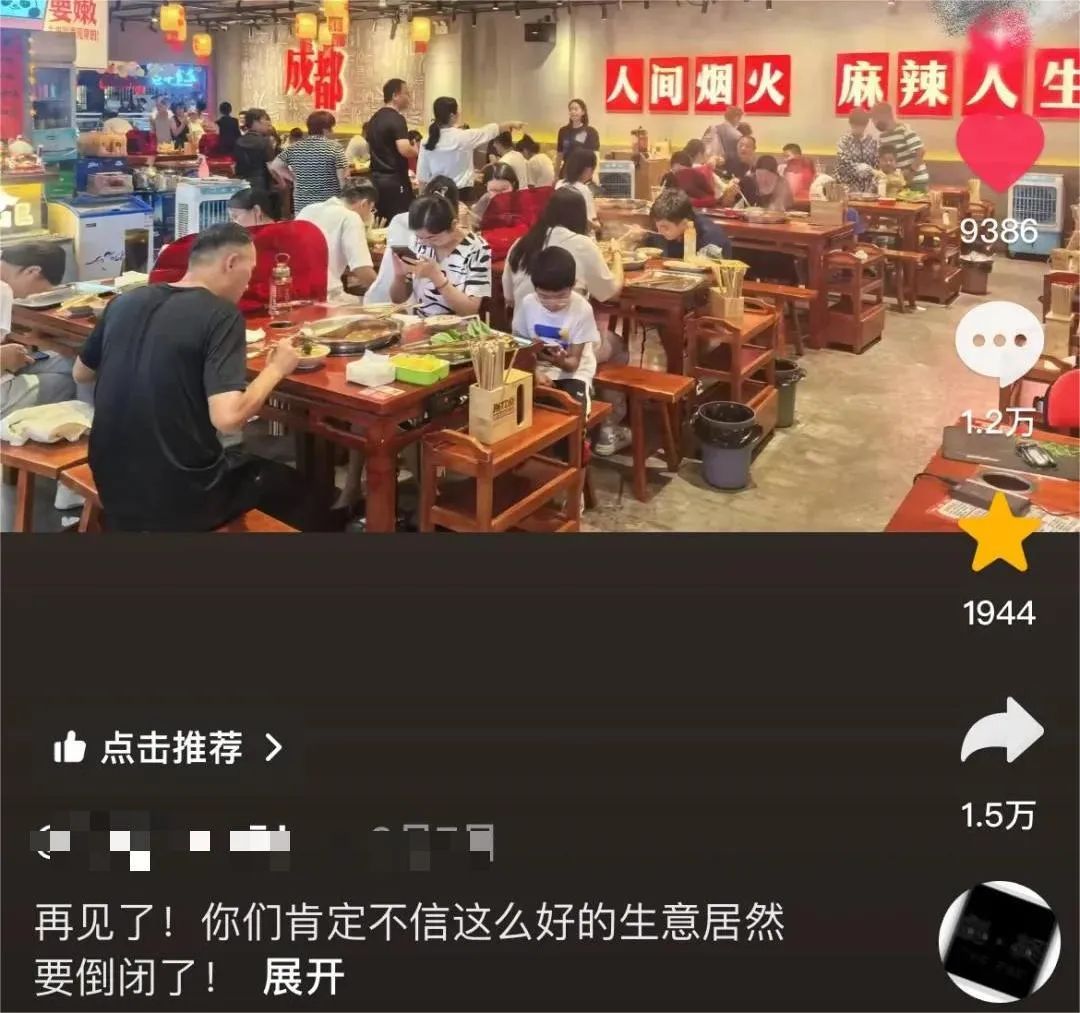 在收支兩端壓力異常巨大的情況下,就連一些生意火爆的餐廳,都不得不黯淡結業,比如曾經上過熱搜的某串串火鍋店。