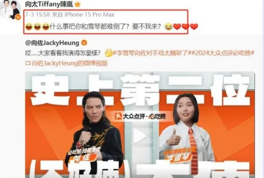 2024年上半年,向佐和李雪琴為某網代言了一則“必吃榜”廣告。