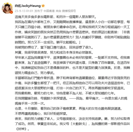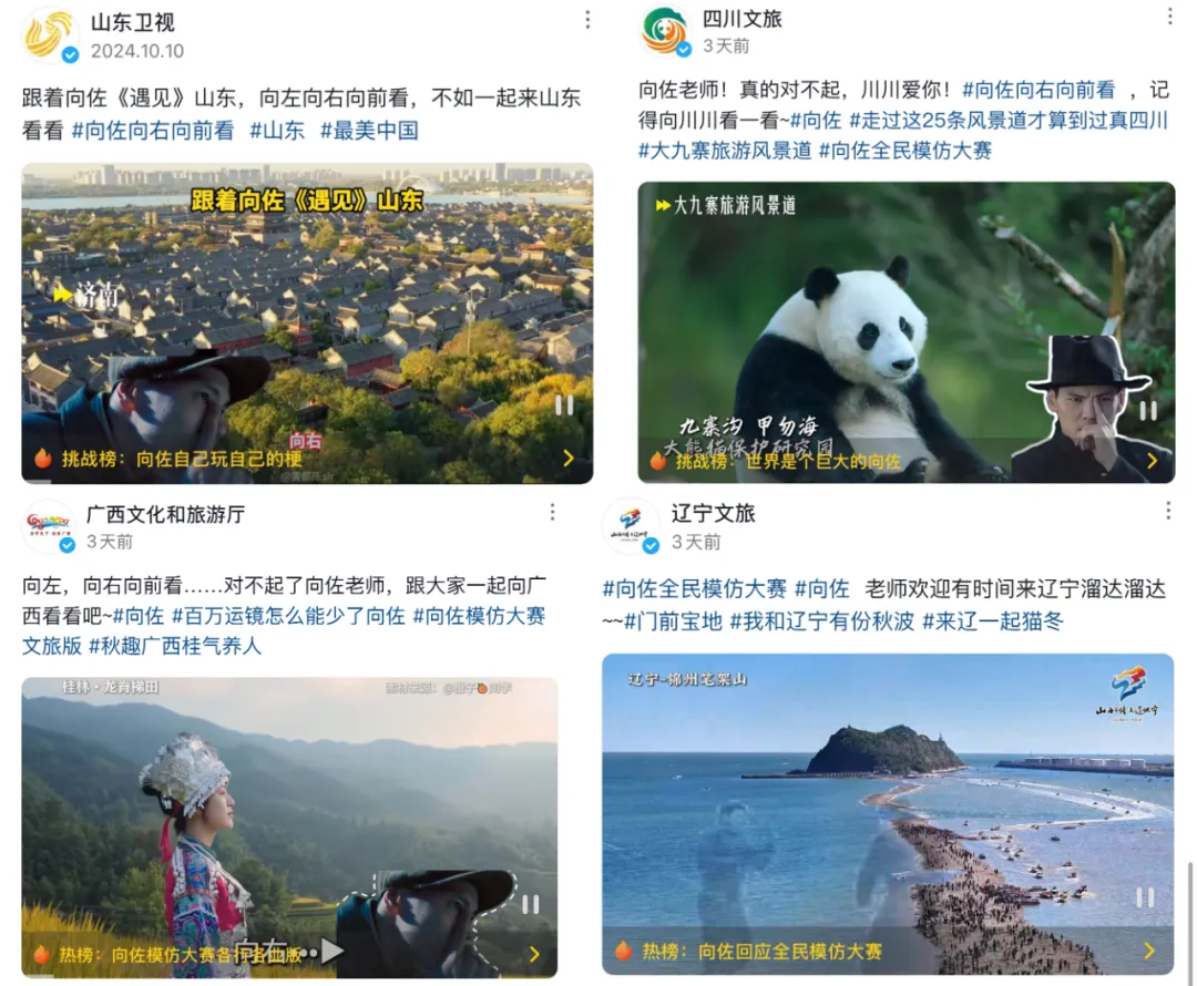 向佐面對羣嘲和官方文旅整活時,索性在社交平台上撰文: