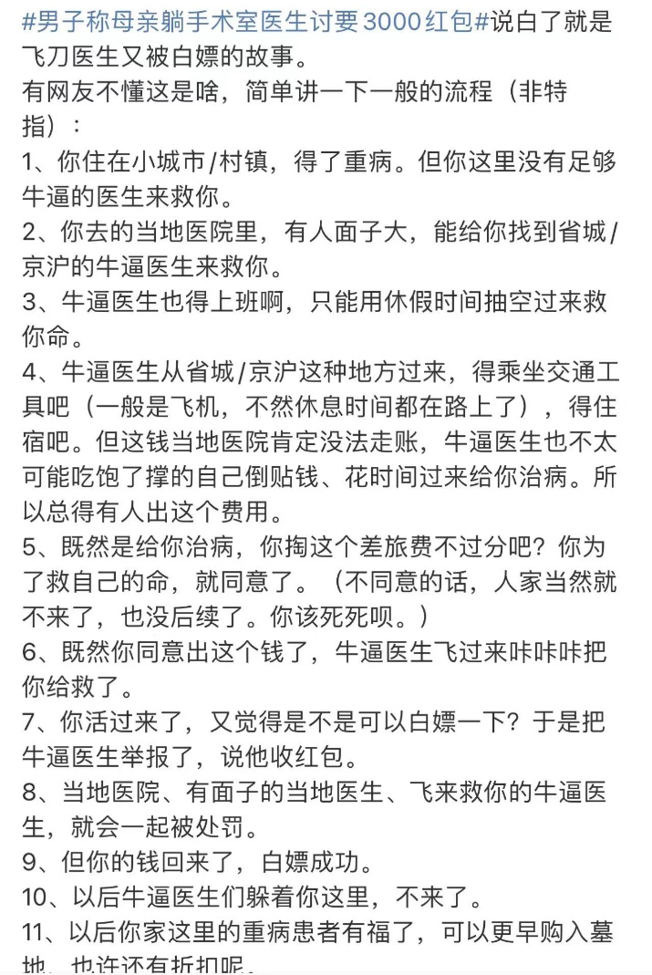 等名醫飛過來,替患者治好病,這時候患者關門打狗……不是,關門打名醫,一個舉報,飛過來的名醫,瞬間就悲劇了。