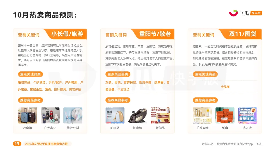9月,開學季、教師節、中秋節成為品牌商家增長的關鍵節點。同時,快手電商在用户對秋冬養生、穿搭需求上,推出金秋趕蟹季、秋上新—秋冬靈感新風向等活動,助力商家抓住旺季生意增長黃金期。
