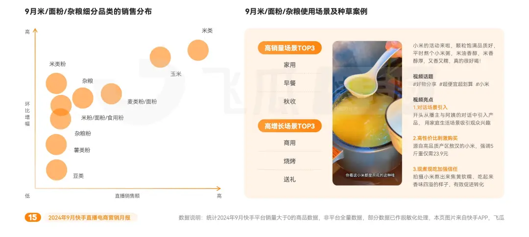 在推廣策略上,品牌商家結合使用場景進行針對性營銷。具體而言,家用、早餐準備、秋收時節成為了銷量最高的三大場景,而商用場合、燒烤聚會以及送禮需求成為高增長場景TOP3。