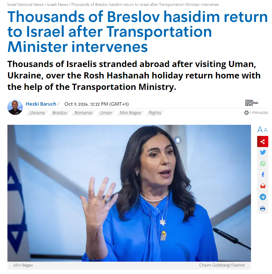 10月8日,《以色列郵報》援引猶太宗教資訊網站matzav的説法稱,由於邊境預約問題,在新年慶祝結束後,有數千名布拉茨拉夫哈西迪派教徒被困在烏克蘭和羅馬尼亞的邊境,無法從烏曼返回以色列。以色列國家新聞在10月9日撰文稱,在以色列交通部長米里·雷傑夫(Miri Regev)的斡旋下,這些哈西迪教徒已成功返回家園。