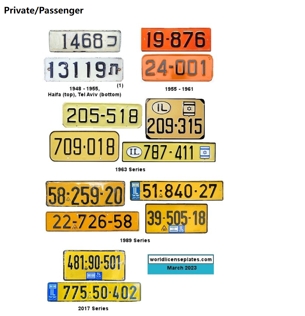以色列車牌示例。