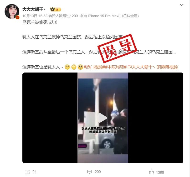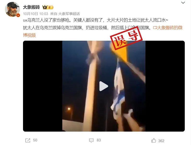 有關説法稱,這是“猶太人在烏克蘭拔掉烏克蘭國旗,然後插上了以色列國旗”,“烏克蘭被偷家成功”。