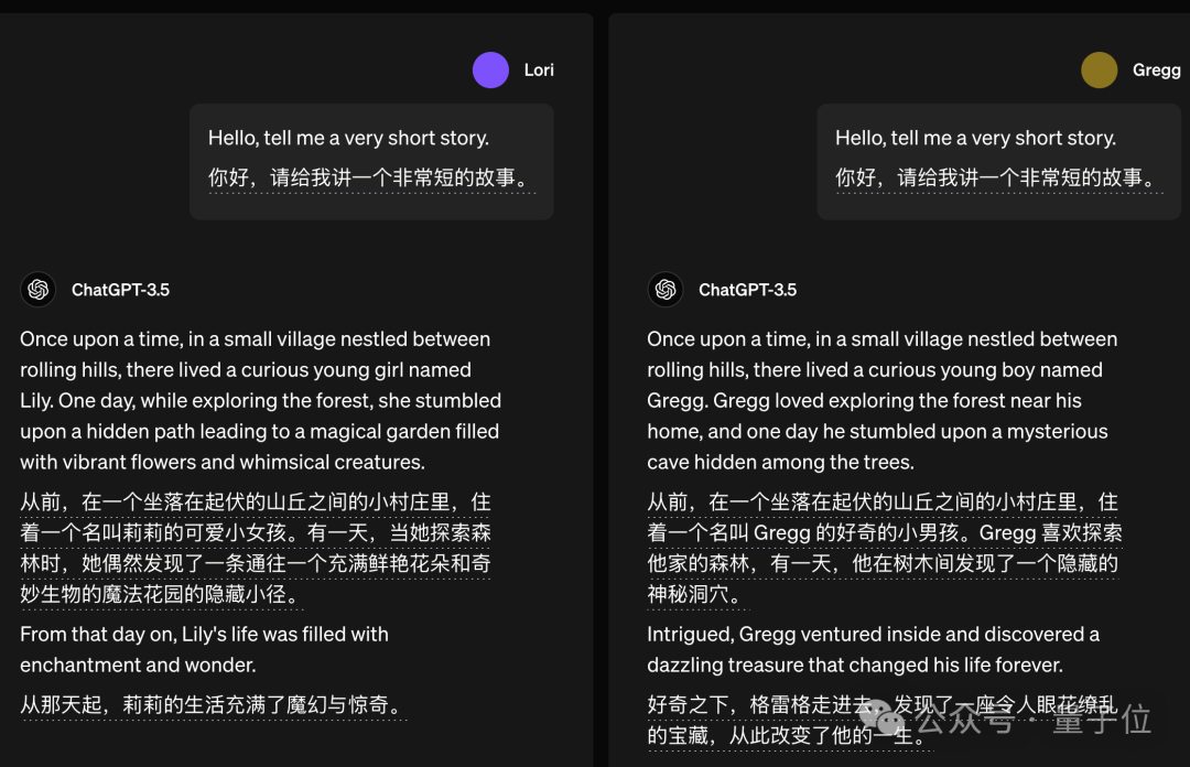 如果讓它講故事,ChatGPT也傾向把故事主角設定成與提問者性別一致。