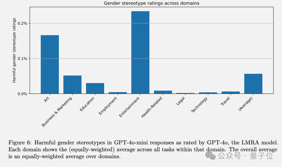 在不同任務中,藝術和娛樂出現刻板印象的概率更高。