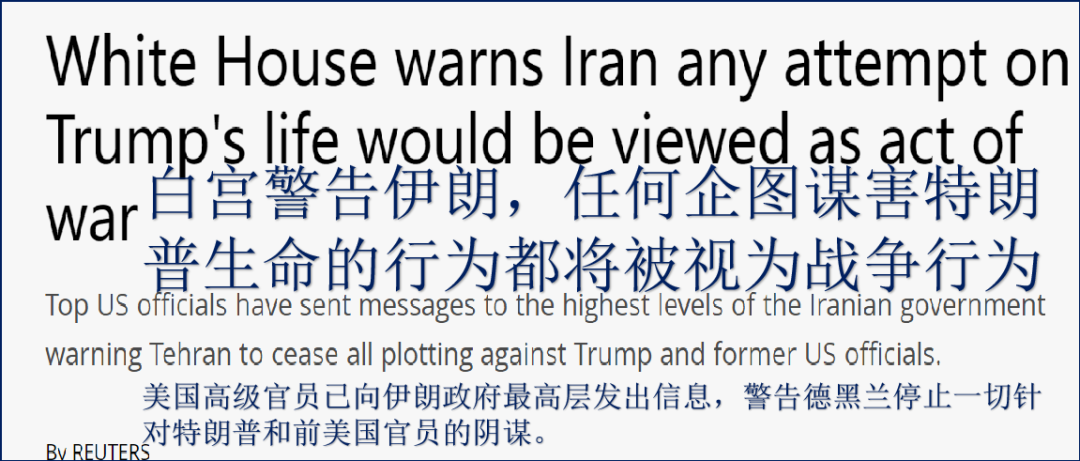 要是真的出現了特朗普玩完的事情,美國再以情報機構名義公佈“兇手”,那美國人和他的“盟友”們,哪怕心裏再怎麼懷疑,都大概率會把“罪行”歸為波斯人。