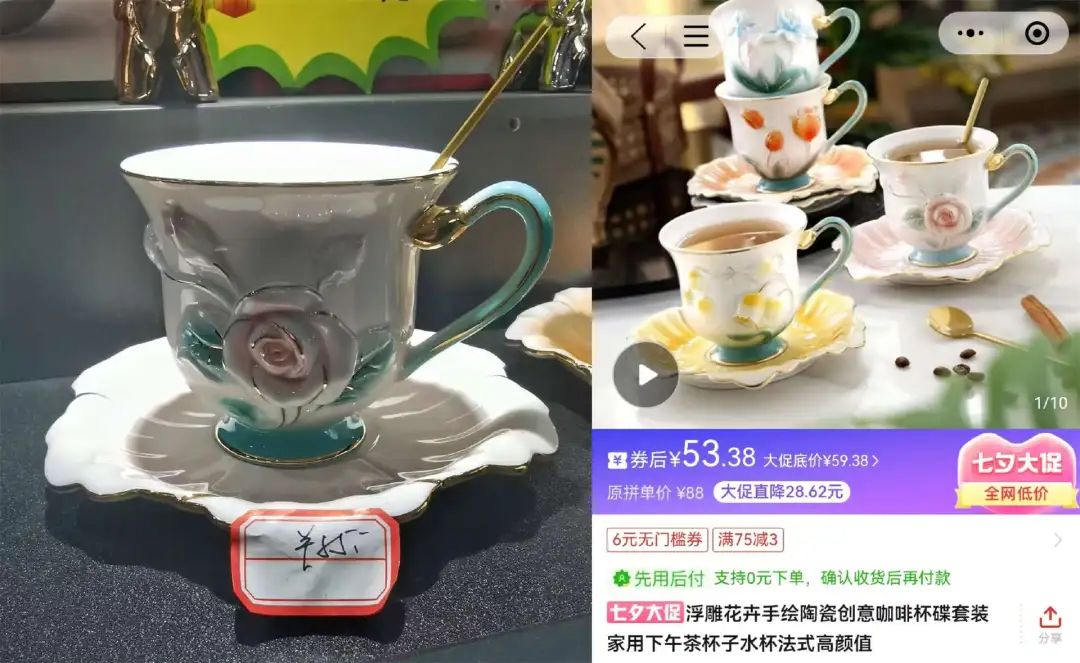 最終,在老闆娘咬着牙説出“就當交個朋友”的話語中,李鋭以140元購買了這隻茶杯,出門後李鋭在網上找到同款,發現僅需百元出頭,還包郵。