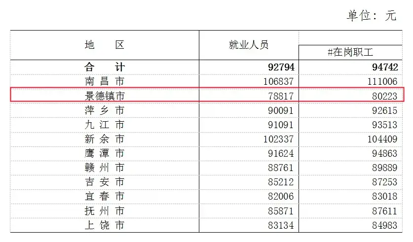 圖 | 2023年江西省城鎮非私營單位分設區市就業人員年平均工資,來源:江西統計