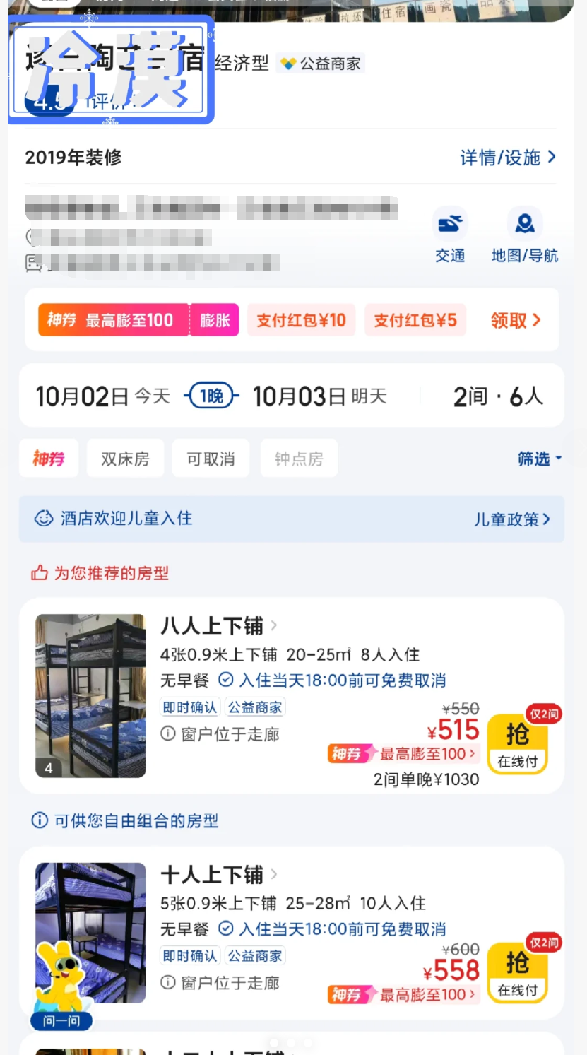 圖 | 國慶期間景德鎮500一天只能搶到八人上下鋪的“民宿”