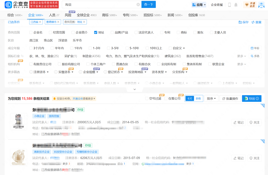根據企查查搜索顯示,目前在景德鎮境內註冊的僅陶瓷相關企業達就達15000多家——某種程度上來説,景德鎮也成了陶瓷銷售的主戰場。